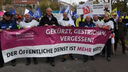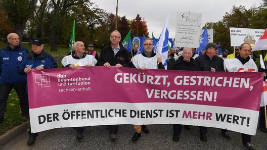 Mit einem Protestmarsch durch die Magdeburger Innenstadt und einer anschließenden Kundgebung vor dem Landtag haben am 28. Oktober 2016 1.200 Beschäftigte des öffentlichen Dienstes gegen sich weiter verschlechternde Arbeitsbedingungen, gegen eine unzureichende Personalausstattung und für eine gerechte Bezahlung demonstriert.