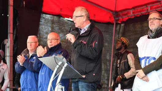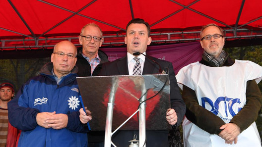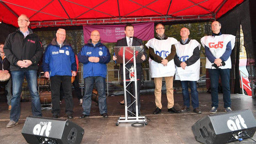 Lautstarke Unterstützung mit Trillerpfeifen und Rasseln erhielt der Bundesvorsitzende der Deutschen Steuer-Gewerkschaft, Thomas Eigenthaler, besonders von seinen Kolleginnen und Kollegen aus der Finanzverwaltung. Eigenthaler, der auch stellvertretender Bundesvorsitzender des Deutschen Beamtenbundes ist, warf der Landesregierung vor, mit ihrer verfehlten Besoldungspolitik die Zeichen der Zeit nicht zu erkennen. Die Bevölkerung wolle einen starken Staat mit einer gut aufgestellten Verwaltung sowie ein hohes Maß an innerer Sicherheit und beste Bildungsmöglichkeiten für die Jugend. Eigenthaler wörtlich: „Die verbissene Sparpolitik des Landes führt zu willkürlichen Sonderopfern vor allem in der Beamtenschaft. Dies ist ein Motivationskiller erster Ordnung und provoziert die Abwanderung des Nachwuchses in benachbarte Bundesländer.“