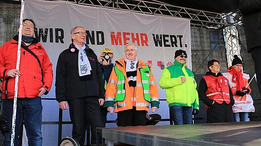 „Insgesamt 6 Prozent mehr sind für die starken Leistungen der Landesbeschäftigten absolut angemessen“, sagte Siegfried Damm, der stellvertretende Vorsitzende der dbb Bundestarifkommission, bei der Kundgebung auf dem Alten Markt. Darin müssten ein Mindestbetrag als soziale Komponente sowie die Einführung einer durchgängigen Stufe 6 in der Entgelttabelle enthalten sein. „Wenn am Donnerstag in Potsdam die Tarifverhandlungen in die dritte und damit vorerst letzte Runde gehen, müssen die Arbeitgeber liefern. Die Geduld der Beschäftigten ist am Ende.“