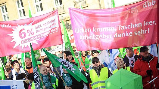 Im öffentlichen Dienst von Sachsen-Anhalt kam es am 14. Februar 2017 zu flächendeckenden Warnstreiks. In Magdeburg versammelten sich 7.000 Beschäftigte des Landes, um für höhere Einkommen zu demonstrieren.