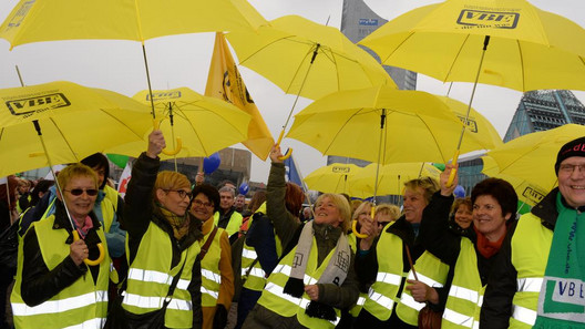 Mit einem ganztägigen Warnstreik haben Arbeitnehmerinnen und Arbeitnehmer der Länder Sachsen, Sachsen-Anhalt und Thüringen am 24. März 2015 ihrem Unmut über die Blockadehaltung der Arbeitgeber in den Tarifverhandlungen für den öffentlichen Dienst der Länder Luft gemacht.